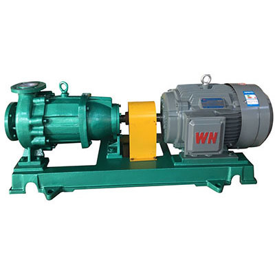 磁力驅(qū)動(dòng)離心泵(簡稱磁力泵)是利用永磁聯(lián)軸器工作原理無接觸地傳遞扭矩的新型泵,當(dāng)原動(dòng)機(jī)帶動(dòng)外磁鋼轉(zhuǎn)子時(shí),通過磁場的作用驅(qū)動(dòng)內(nèi)磁鋼轉(zhuǎn)子同步旋轉(zhuǎn),而內(nèi)磁鋼轉(zhuǎn)子和葉輪連成一體,從而達(dá)到無接觸帶動(dòng)葉輪轉(zhuǎn)動(dòng)的目的,由于液體被封閉在靜止的隔離套內(nèi),所以磁力泵是一種全封閉、無泄漏的泵型,因此完全杜絕了填料密封、機(jī)械密封離心泵不可能避免的跑、冒、滴、漏的弊病。