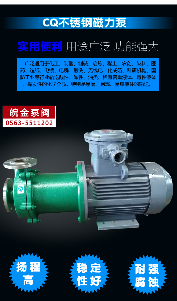 不銹鋼磁力泵又稱其為磁力離心泵、不銹鋼磁力驅動泵、耐腐蝕磁力化工泵,JCQ不銹鋼磁力泵是金屬磁力泵中的經(jīng)典結構款型。